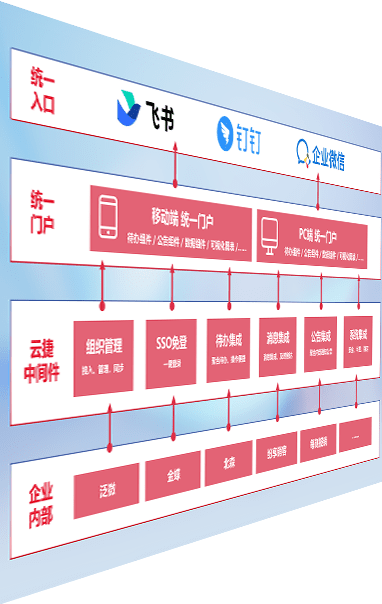 对协作平台提供支持服务,,,支持企业应用与协作平台对接,,,,包含组织同步、、消息集成、、、待办集成等。。。支持目前主流的协作平台:钉钉、、、、企微和飞书。。