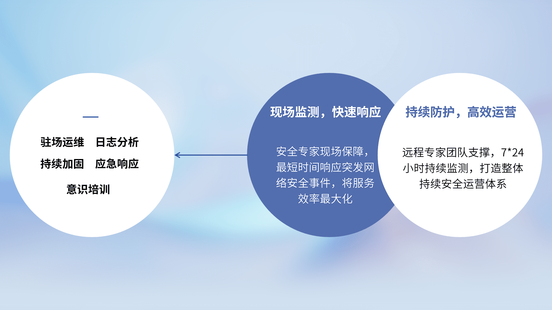 7X24小时持续监测安全事件,保持安全策略有效性,降低资产脆弱性风险,,精准拦截黑客攻击,,,减少被黑客利用的机会,,第一时间遏制,,降低损失。。。。